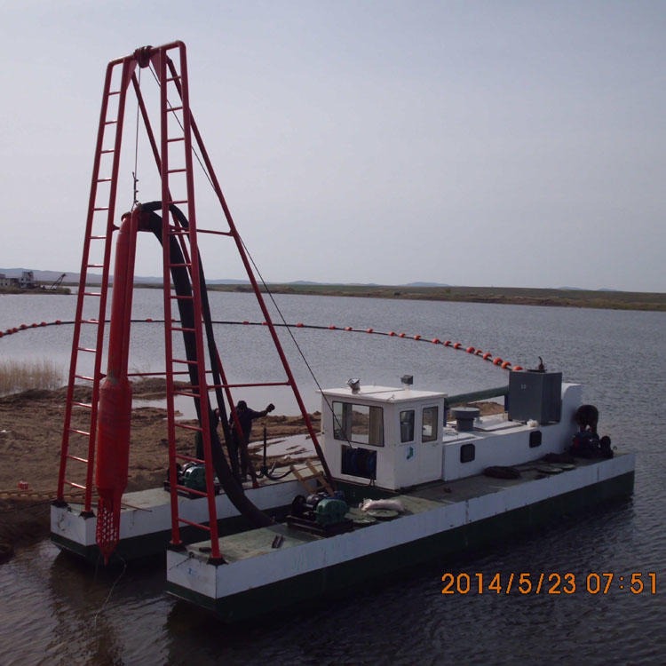 此船廣泛用于和抽沙、水庫,人工湖,河道,港口的清淤和取沙工程。 射吸式抽沙船由高壓水泵和吸沙泵組成,射吸式抽沙船利用船動力帶動水泵,產生高壓水流進入噴水管,高壓水泵把經高壓水槍沖擊水底的泥沙層,將沉積河底的淤泥吹攪成渾濁的水狀,泥沙飛濺泛起在吸沙**周圍,經吸沙泵吸起由上吸管排到指定位置,這樣一噴一吸完成整個工作過程。