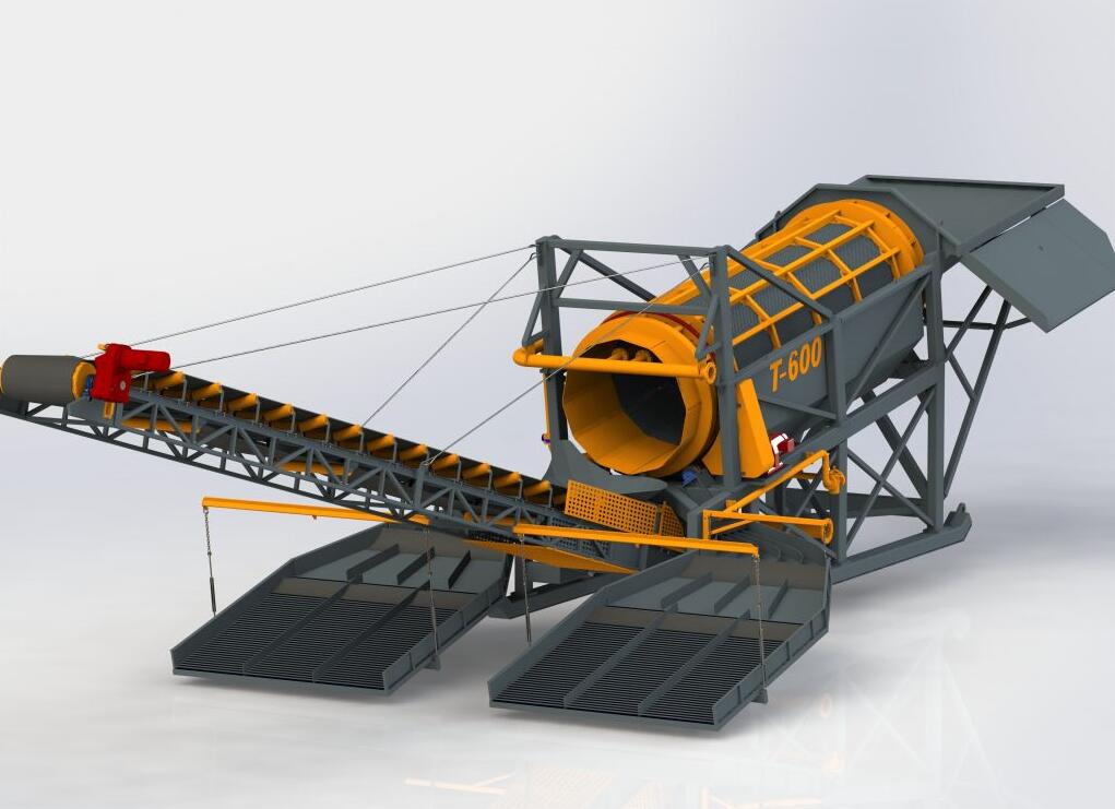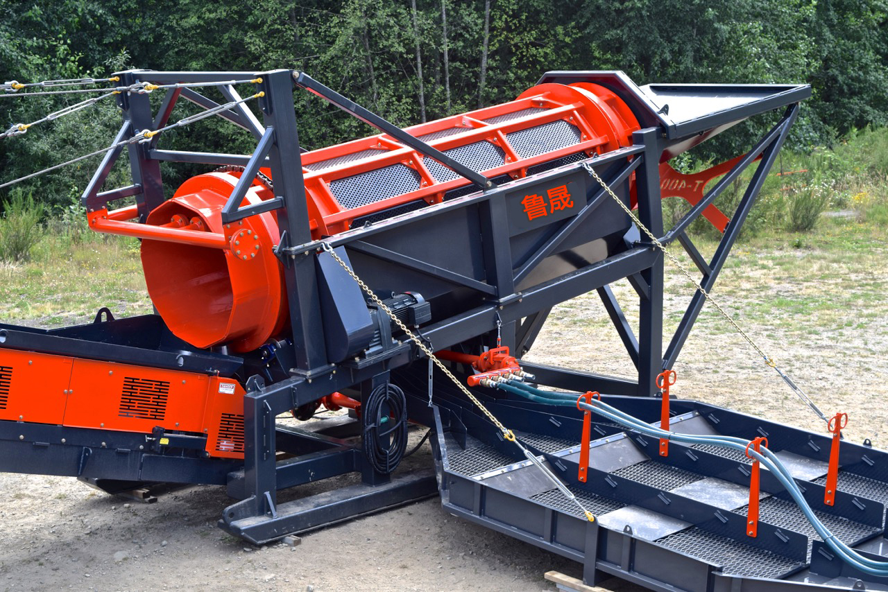 該設備是采用滾筒攪拌分離篩進行礦物的分離,將石子等廢料排出,沙料進入選金溜槽進行選金。然后再進行提純冶煉直到金磚或金條。 滾筒攪拌分離篩是采用特殊鋼骨結(jié)構(gòu)打造,外網(wǎng)采用聚氨酯材質(zhì)。篩孔尺寸可以定制。