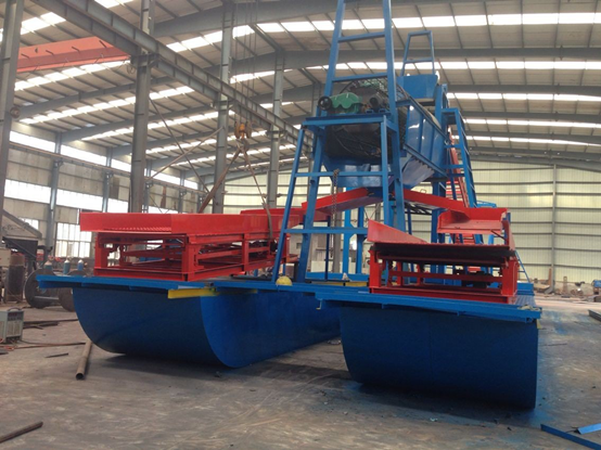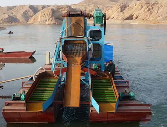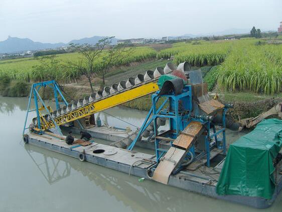 溜槽淘金船是目前使用率比較廣的淘金船,溜槽可以有幾種選擇比如:蠕動溜槽、鼓動溜槽、振動溜槽、循環溜槽、固定溜槽等。可以根據黃金形態進行配套。淘金船的產量和回收率可以根據客戶的要求定制。
